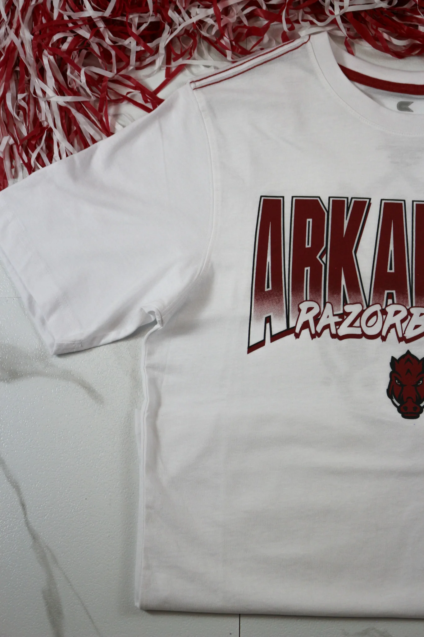 Show off your team spirit with this Arkansas Razorbacks Men's White Short Sleeve T-Shirt! Made with soft and durable materials, it's perfect for game day or everyday wear. Support your favorite team while staying comfortable and stylish. Go Razorbacks!