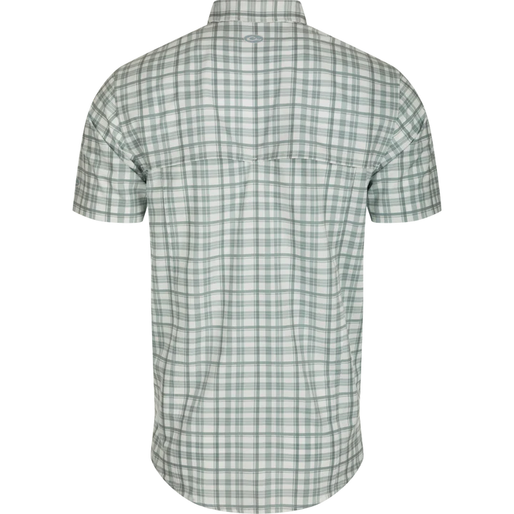 The Drake Hunter Creek Window Pane Plaid Shirt combines comfort and technology by using a unique micro-mesh weave made from 100% polyester. This performance fabric is lightweight at 120 GSM which allows moisture to wick quickly from the body. The micro-mesh provides natural ventilation and has SILVADUR antimicrobial technology to keep the shirt fresh and odor free. It also has a UPF30 rating for sun protection plus it has natural stretch for ease of movement. The Drake Hunter Creek Window Pane Short Sleeve shirt is packed with features: a classic fit, a hidden button-down collar, a vented back cape, two buttons through flap chest pockets with a covered hidden zipper pocket on the right pocket and a Magnattach closure on the left pocket. It has a sculpted hem which allows you to wear tucked or untucked. Inside the hem is a built-in sunglass wipe. Classic styling and technical features make the Drake Hunter Creek Window Pane Shirt a high performance and functional shirt you will enjoy for years to come.Â