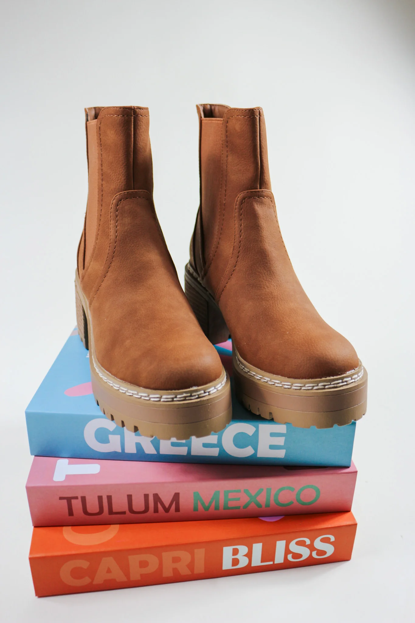 Elevate your fall style with the MIA Torren Cognac Bootie. These platform brown booties are the perfect addition to your wardrobe, providing both comfort and style. Step into the season with confidence and make a statement with these must-have booties.