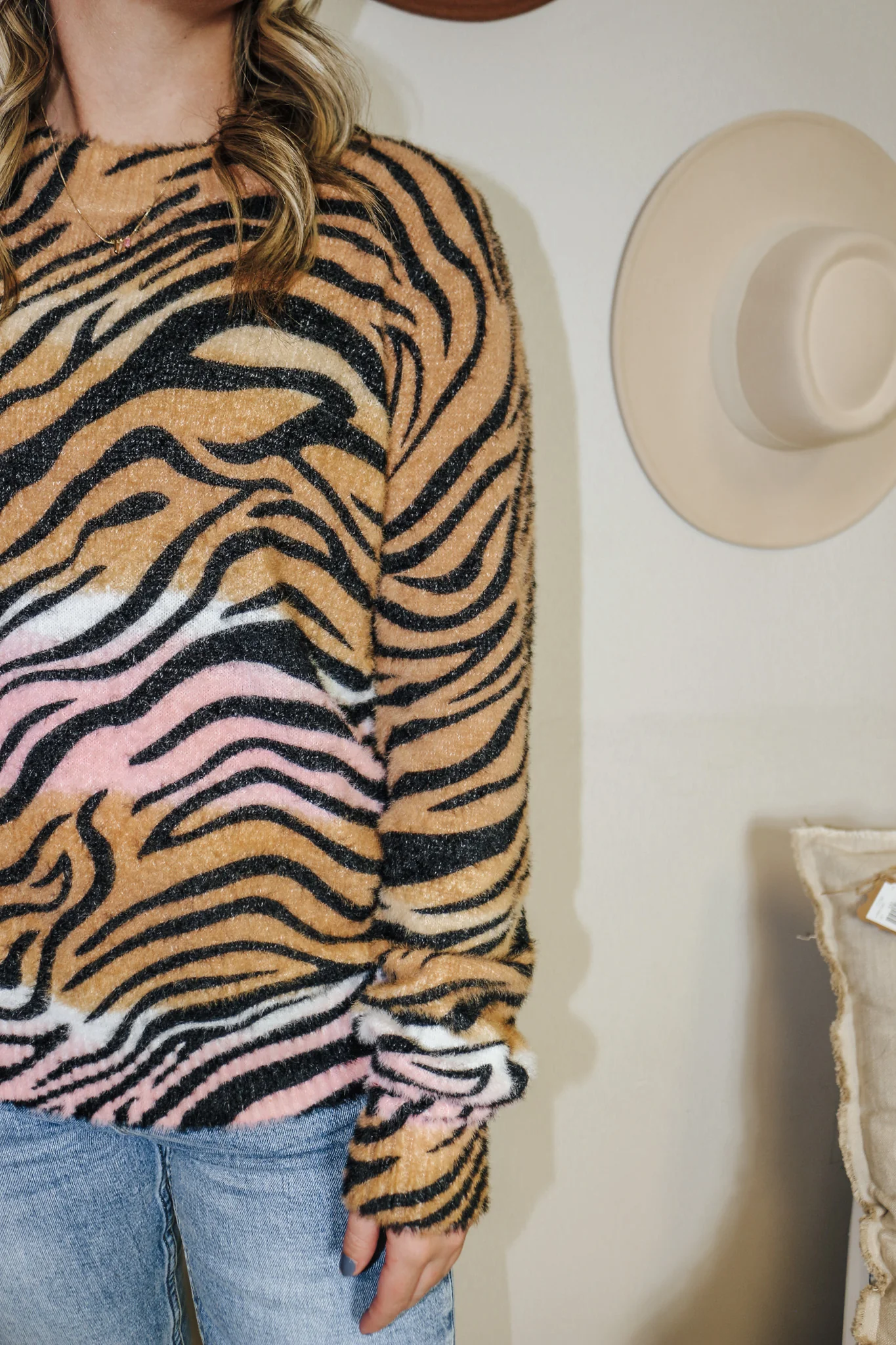 Tribal Tan & Pink Zebra Sweater